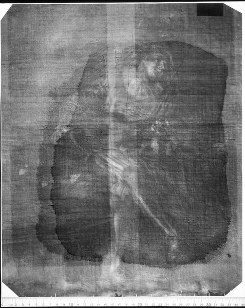 Editor: So, this is an X-radiograph of "Deploration", by Ambrogio Lorenzetti. It's fascinating to see this behind-the-scenes look. What strikes me is how the layering creates such a dynamic composition. How do you interpret this work as a formalist? Curator: The stark contrast between the dark and light areas creates a compelling interplay of positive and negative space. Note how the X-ray reveals the artist's process, the underpainting, and the corrections. Does this alter your perception of the original work? Editor: Definitely! It almost feels like a deconstruction of the artistic process itself. It's not just about the final image, but the journey to get there. Curator: Precisely. The materiality of the paint and the structure revealed by the X-ray invite us to consider the artist's choices on a much deeper level. This view allows for an enhanced appreciation of the artist’s craft. Editor: I see now. The X-ray lets us analyze the structure and composition, not just the final image. Thanks for highlighting this perspective.