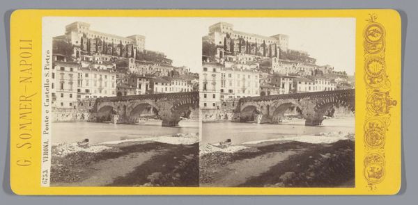 Editor: This gelatin-silver print from 1900 captures the Pont Alexandre III during the World's Fair. The photographic method renders such crisp lines, such precise detail! How might one interpret the work with emphasis on its structure, Professor? Curator: Precisely. Note how the composition uses the bridge itself as a strong, almost symmetrical, horizontal element. The architectonics of the bridge — its arches, the rhythm of its supports—create a visually compelling framework. Editor: The surface texture created with photography also makes it stand out. Curator: Indeed. The grayscale palette highlights tonal values and texture, drawing attention to the varying degrees of light reflecting from the water and the stone. Consider the calculated contrast and arrangement— how does this treatment affect our understanding of the subject matter? Editor: It accentuates the structure but in a softened way that doesn't overpower the eye, creating an aesthetic balance. Curator: Balance is achieved, yes, by the calculated arrangement of visual components—the mass of the bridge in relation to the sky, the placement of architectural ornamentation… Editor: So, moving past immediate representation, we observe how the visual components relate, how those relations impact meaning and aesthetic qualities, a way of reading a work without specific contextual knowledge... Curator: Precisely. Editor: Thank you, this Formalist reading sheds much light on the intrinsic values of this photography. Curator: A pleasure, may your inquiry be continuous.