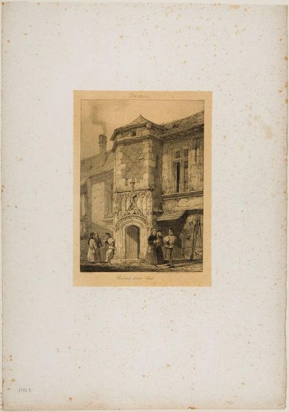 Curator: Sir Muirhead Bone's drawing, "An Officer's Billet at G.H.Q., June 1917," shows the facade of a grand building, rendered in precise lines. It's part of the Tate collection. Editor: It's unsettling—this image of calm domesticity amidst the chaos of war. The open door seems to invite us into something ordinary, even as the reality was anything but. Curator: Bone was one of the first official war artists in World War I. Images like this were meant to portray the war effort as organized and under control, shaping public perception. Editor: But that very control is what I find disturbing. It attempts to normalize the unacceptable, to erase the human cost. Where are the people? Where is the trauma? Curator: The drawing exemplifies how art functions as a political tool, sanitizing the brutal realities of war for consumption back home. Editor: It's a study in contrasts—the detailed architecture versus the absent human figures. It leaves me questioning what stories aren't being told. Curator: Absolutely, a poignant reminder of the power of visual narratives in shaping historical memory. Editor: A beautifully rendered, deeply troubling image.