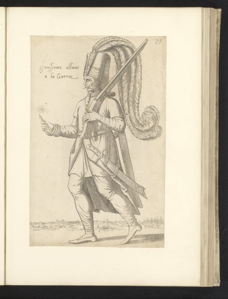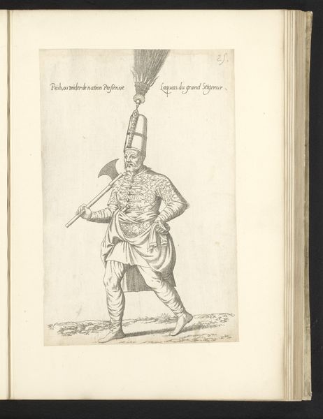 Editor: This is Léon Davent's "Perzische man," or "Persian Man," an engraving dating back to between 1555 and 1568. It depicts a man in what I presume are Persian garments. The line work seems very precise. What strikes you about this print? Curator: Looking at Davent’s print, I am drawn to think about the materiality of the engraving itself. The creation of this image, through the labor-intensive process of etching lines into a metal plate, speaks to a burgeoning print culture and a growing interest in disseminating images and knowledge widely. Consider the socio-economic context: how did this relatively new method of printmaking impact artistic production and the consumption of imagery in the 16th century? Editor: That’s an interesting point. So, instead of focusing solely on the "Persian man" himself, you’re more interested in how the print itself came to be? Curator: Precisely! This isn't just a representation; it’s an artifact reflecting specific technological advancements and modes of production. Davent was part of a workshop, a production line. Who was buying these prints? How did they contribute to ideas about "the Orient"? We might also investigate where Davent sourced his paper. What did access to materials mean in that historical moment? Editor: I see what you mean. Thinking about the paper and ink used, and who had access to them, opens up a whole new way of understanding the piece beyond just its visual subject. Curator: Exactly! We must acknowledge this image as part of a wider material and social network. The "Persian Man," then, embodies not just an exotic other, but also testifies to the economic and material realities of 16th-century Europe. Editor: It definitely makes me consider art beyond its face value. There's so much more to unpack when we think about its creation and circulation. Thanks for highlighting that!
