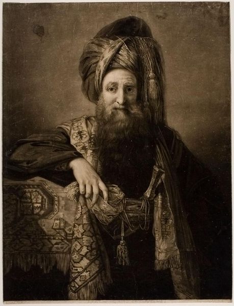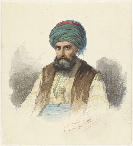 Curator: Welcome. Before us hangs "Ein Türke," or "A Turk," rendered in 1840 by the Austrian artist Friedrich von Amerling. It’s an oil painting, representative of the Romantic fascination with the "Orient" that permeated much of 19th-century European art. Editor: First impressions? That turban! It’s this gorgeous mix of greens and burgundies. It has a theatrical air that clashes ever so slightly with the solemn profile. He seems caught between worlds, doesn’t he? Exoticized, but undeniably human. Curator: Indeed. Amerling, a celebrated portraitist within Viennese society, painted this during a time when "Orientalism" was fashionable. The "Orient" often became a projection screen for European fantasies and power dynamics. The term "Türke," which simply means "Turk" in German, here stands for the archetype of a character rather than any precise likeness of a man. Editor: That’s the slightly unsettling thing for me. He’s so meticulously rendered, almost reverentially… yet, I wonder how much agency he, the actual subject, had in all of this? Was he in on the artistic vision, or simply… a stand-in for a European fantasy? It dances between genuine respect and exoticising objectification, which makes viewing it today quite complex. Curator: The gaze is definitely worth exploring. Consider the lack of eye contact. He gazes toward something outside the frame, perhaps even a future we, as viewers, are invited to ponder. This was painted at a time of waning Ottoman influence. The "exotic" became something to study, and something to master… or at least believe one could master through depiction. Editor: The textures are divine. You can practically feel the weight of the beard, the silkiness of the turban. There is a hyper-realism employed. Even knowing the possible agendas behind it all, I am captivated. It is an excellent study of an intriguing subject regardless of intent. Curator: I agree. His costume is interesting. What might appear as typical “Oriental” dress for European viewers contains many layers of reality as a reflection of then fashionable status symbols. While remaining within its art-historical contexts it forces a needed look at what it means to otherize an entire portion of the world based on presumptions and power dynamics. Editor: Exactly. Well, seeing the art for me isn’t only looking but feeling—diving head-first into conversations it sets alight within oneself. This canvas makes the old, romantic stories glow while nudging us to ask better questions of the world, and the art that holds up its mirror.