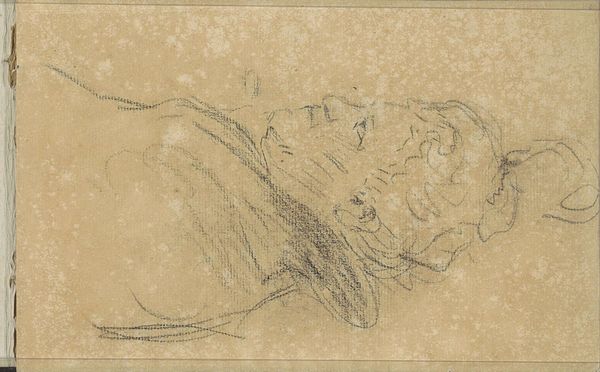 Editor: Here we have Jacob Maris’s "Head of a Goat," a pencil drawing from the late 19th century. It's quite a sketch, really. Raw and unfinished. What compositional elements stand out to you? Curator: The drawing is striking in its immediacy. Note how Maris captures the essence of the goat’s form with an economy of line. Consider the varying pressure applied to the pencil; heavier lines define the eye and horn, giving them prominence. The texture of the goat's hair, for example, is suggested through the repetition of light, rapid strokes. Observe also the compositional choices—how the artist leaves large areas of the paper untouched, drawing our focus to the meticulously rendered head. Editor: The contrast between the defined areas and the blank space is interesting, as if the goat is emerging from nothing. Why is there this difference in how he defines the eye and the horns but then lets other shapes fall into less firm construction? Curator: The contrast you observe serves to emphasize specific formal qualities of the subject, the planes of the face and the protruding horn are delineated more completely. It emphasizes what is essential for recognition while inviting the viewer to engage actively, to fill in the missing details through their own perception. Does that incomplete expression diminish the overall impact of the work, or does it somehow enhance it? Editor: I think it adds to it. The sketch-like quality makes it feel more alive, like a fleeting observation, but still the character shines through. Curator: Precisely. And through this concentration on form and line, we can begin to appreciate Maris' skill in distilling the animal to its most fundamental visual components. Editor: This exercise helped me see how focusing on technique brings the work to life. Curator: Indeed. Maris’s “Head of a Goat” exemplifies how careful consideration of the elements and principles can allow viewers to grasp an artwork's purpose without relying on external context.