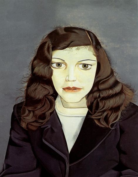Editor: Here we have François Barraud's "Yvonne in a Velvet Dress," from 1930. It's an oil painting of a seated woman, rendered in rather muted tones. I'm struck by how still and composed the figure appears, almost like a statue. What elements stand out to you? Curator: Initially, it is the precise articulation of form that captivates. Observe how the artist uses light and shadow to define the contours of the figure and the cubic volume upon which she sits. The composition, too, offers a structured interplay between verticals and diagonals. Editor: Yes, I see how the lines create a sort of geometric stability. What about the relationship between the figure and the objects, like the cherries? Curator: Note the calculated arrangement. The bunch of cherries, scattered across the foreground, introduce a visual counterpoint to the severe, almost stoic pose of the woman. This creates a structured visual opposition. Now, what would you say about the velvet dress? How would you approach its semiotic potential? Editor: Well, it's dark and concealing. I suppose it adds a layer of complexity because velvet has such a rich texture that isn't really explored here, keeping the focus firmly on the overall form instead of the detail of the dress itself. Curator: Precisely! Barraud uses velvet's conventional association to provoke new dialogues about class and intimacy. The flattening of its texture enhances the structural simplicity. Would you not agree that its very artificiality evokes an estrangement from classical beauty? Editor: I hadn't considered that. The formal elements definitely override any sense of romanticism. Curator: Yes. Through rigorous attention to form and arrangement, Barraud constructs a world defined by its internal logic. Editor: Thanks, seeing it in terms of pure form really clarifies its effect. Curator: Indeed, it highlights the constructed nature of both art and experience.
