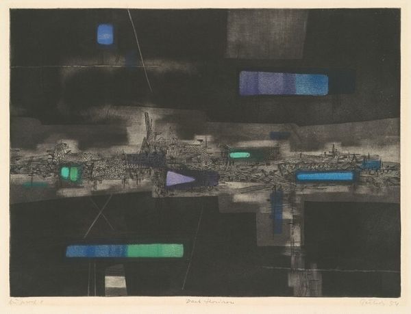 Edmond Casarella created this print, Swamp Bank, using a woodcut technique. Casarella came of age as an artist in the mid-20th century, a time when American art was increasingly engaged with abstraction. The turn to abstraction can be seen as a retreat from the social realism of the preceding decades. Here, the landscape is rendered as a series of interlocking shapes, with a limited color palette evoking a sense of depth and atmosphere. This approach reflects the formalist aesthetics that dominated art institutions and critical discourse at the time. It’s an image far removed from depictions of social life. To understand this work fully, it's helpful to consider the rise of institutions that promoted abstract art during this period, and the social dynamics behind them. Art historians might consult exhibition catalogs, critical essays, and artists' writings to reconstruct the cultural context in which this print was made.