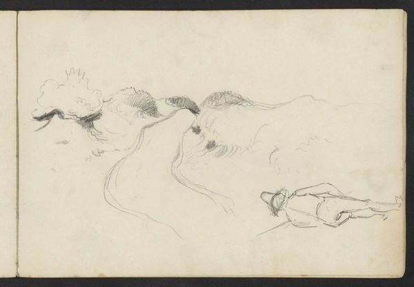 Curator: This sketch, simply titled "Waterlelies," created by Willem Cornelis Rip around 1895, seems to capture a fleeting moment in nature using primarily pencil on what appears to be laid paper. It feels very immediate. What strikes you most about this work? Editor: I’m intrigued by how such simple materials – just pencil and paper, really – can create such a delicate impression of light on water. How do you see the artist engaging with these ordinary materials to achieve this effect? Curator: Well, the pencil itself is a processed material. We might consider where Rip sourced his pencils and paper from, what that suggests about their market availability at that time and how it fits with impressionistic ideals of depicting "modern life" through a readily accessible tool. Think about the labor involved – the graphite mined, the wood processed for the pencil casing, the rags pulped to make the paper. Does seeing the finished product encourage a conversation about all those individual processes? Editor: That's a great point. It’s easy to forget all of that when we’re looking at the finished art. But the pencil, the tool itself, played a critical role, wouldn't you say? Could he have made a similar artwork with charcoal? Curator: Possibly. Charcoal would require its own unique production methods—controlling the burning of wood. But this is impressionism, which moves beyond pure representation and strives to catch the immediacy of a particular moment, with quick marks, which, in my opinion, is better achieved with a pencil as the final work feels a little more crisp and polished than with charcoal. Do you think the choice of materials reflects a democratic or an elitist aesthetic? Editor: I’d never thought of it that way before! Now I understand it's not just the finished product that's important, but all the hands and processes that contributed to its creation. It definitely gives me a new appreciation for the work. Curator: Indeed. Understanding the material conditions of art production allows us to read artworks not just as aesthetic objects, but as products of a complex social and economic system.