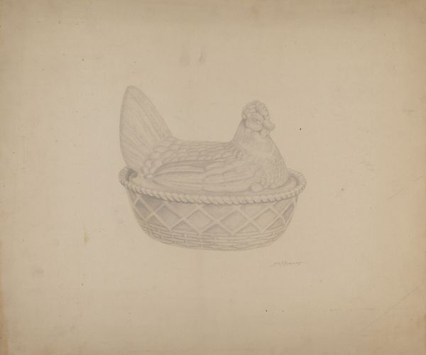 Editor: Here we have Jesus Pena's "Dough Bowl," created around 1940. It’s a delicate pencil drawing on paper, but it really makes me consider what is 'craft' and what is 'Art'? What do you see in this humble object rendered with such care? Curator: Well, I see a quiet reverence. Pena's chosen something so workaday, something touched daily by hands making sustenance. It reminds me that beauty isn't just in the grand gesture but in the intimate details of living. Think of the hands that hollowed out the wood, the hands that kneaded dough within, and now Pena's hand, translating this into art. Isn’t that amazing? It transforms the mundane. Editor: That's beautiful, that layering of hands and history. But do you think there’s something lost when a utilitarian object becomes just a subject, detached from its purpose? Curator: Perhaps. But maybe something is gained, too. By isolating it, by forcing us to *look* at it, Pena elevates it, gives us space to consider the beauty we might otherwise rush past. It's like a haiku, distilling experience to its purest form. What do you think that 'bowl' symbolizes? Editor: Hmm... Perhaps simple abundance, memories of home. The skill in this drawing encourages us to observe objects anew, not to simply consume them, metaphorically or literally. Curator: Precisely! And it reminds me to pause, appreciate the small things. Sometimes the deepest wells of inspiration are right there on the kitchen table! It will stick with me forever! Editor: Me too! I’ll certainly look at my own dough bowl a bit differently from now on. Thank you for sharing your insight!