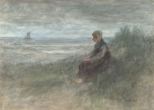 Jozef Israëls made this watercolor, "Sitting Woman on a Dune by the Sea," sometime in the 19th century. The woman in Israëls' painting embodies the themes of solitude and reflection, and the artwork may comment on the social structures of its time. The image creates meaning through its subtle visual codes and historical associations. Israëls was a Dutch painter, and this scene likely reflects the geography of the Netherlands. In the 19th century, the Netherlands was undergoing significant social and economic changes, including industrialization and urbanization. The artwork may reflect a sense of nostalgia for a simpler, more rural way of life. This, in turn, hints at a critique of the changing social conditions and the impact of modernization on individuals and communities. Art historians use a range of resources, like letters, exhibition reviews and other contextual documents, to understand the meaning of art as something contingent on social and institutional context.