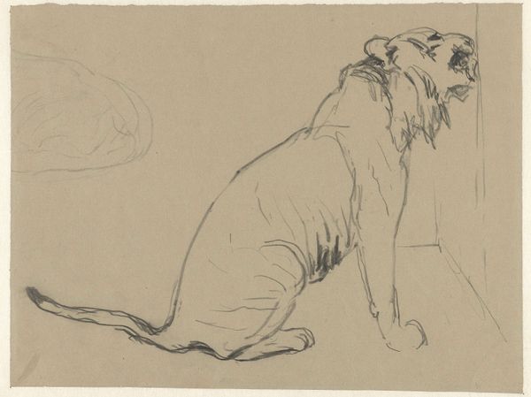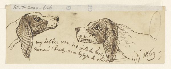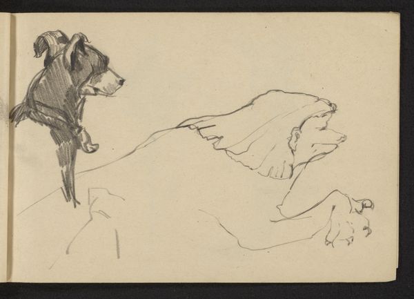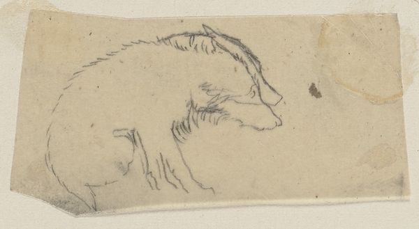 Editor: Here we have "Head of a Hunting Dog, in Profile" by Johan Daniël Koelman, created sometime between 1841 and 1857. It's a pencil drawing currently held at the Rijksmuseum. I’m struck by how immediate and fleeting it feels, almost as if the artist quickly captured the dog's essence. What do you see in this piece? Curator: I see a moment of connection, that flicker of recognition we experience when we truly *see* an animal. Pencil sketches often reveal an artist’s direct encounter with their subject – no hiding, just raw observation. Do you notice how the shading defines the musculature, almost like caressing the dog’s head? Editor: Yes, it's incredibly tactile! The lines are so simple, but they really capture the form. Is there something more to it being a "hunting dog?" Curator: Absolutely. Hunting dogs represent loyalty, skill, and the relationship between humans and nature. This drawing isn't just a study of an animal; it hints at a whole world of activity and partnership. The profile view is key; it conveys dignity and purpose. What does the gaze of the dog evoke in you? Editor: It's very calm, thoughtful even. I wouldn't expect that from a hunting dog! Curator: Perhaps that's Koelman's subtle point. Even the most driven creature has moments of introspection. It makes me wonder about the bond he shared with animals and his insightful view on even the working class among them. Editor: I see what you mean. It is much more than just a simple sketch. Curator: Exactly! It's a small window into a larger understanding of connection and respect in 19th-century life.