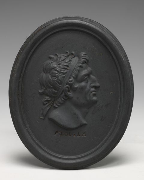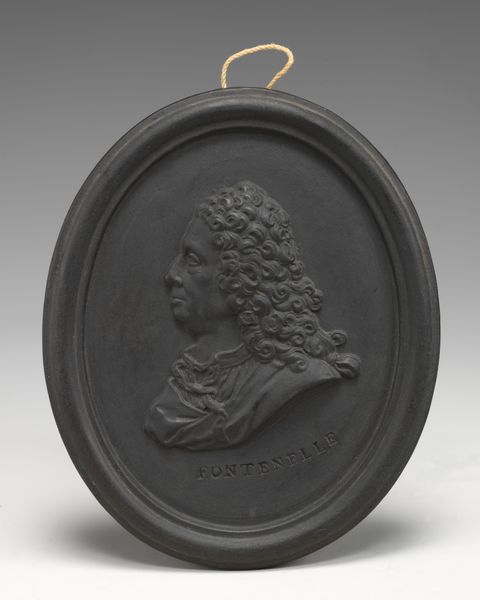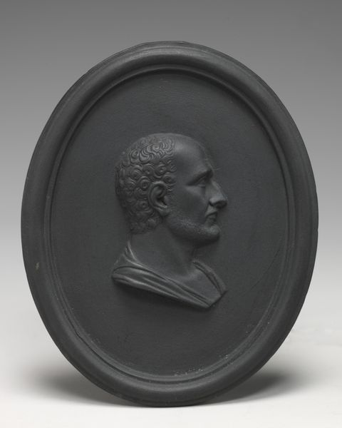 Curator: Here we have an 18th-century ceramic sculpture titled "Josiah Wedgwood," currently housed at the Metropolitan Museum of Art. It's a profile portrait, a popular format during the Neoclassical period. Editor: My immediate impression is one of reserved dignity. The monochrome palette really strips away the frivolity, focusing on form and the character, the kind of man this is meant to convey. Curator: Precisely! Wedgwood, the man, was a titan of the Industrial Revolution, celebrated for his innovative pottery techniques and savvy marketing. The portrait reflects this image he cultivated. Editor: That dark, matte ceramic – it feels so… deliberate. Almost like a cameo, referencing classical antiquity. Curator: Indeed, the cameo format and Neoclassical style signal Wedgwood's desire to align himself with the ideals of the Enlightenment, with notions of virtue, reason, and refined taste. Though accessible to many thanks to mass production, his pieces symbolized higher societal ideals. Editor: So it's less about raw power, more about intellectual and artistic achievement symbolized via his products. The choice of profile, avoiding direct eye contact, also hints at a strategic public persona. Curator: Exactly. Wedgwood carefully curated his public image. His abolitionist medallion is another example. He recognized the power of symbols to shape public opinion. This portrait isn't just about likeness, but about projecting power and associating his name with civic virtues. Editor: Seeing it like this really humanizes history, doesn't it? Realizing that people were performing even then, acutely aware of the messages their image communicated. Curator: A permanent stage where Wedgwood set himself as a character of influence. This ceramic cast showcases that to me. Editor: Thanks, this perspective changed the way I’ll be approaching this object and other objects moving forward.