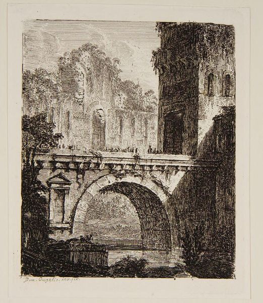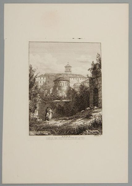 Editor: This is Luigi Rossini’s "Ruins of the Palace of the Caesars." It's quite striking how these ancient ruins are juxtaposed with what looks like contemporary life. What story do you think this image is trying to tell? Curator: Rossini’s etchings captured Rome at a time of burgeoning tourism and archaeological interest. Consider how images like this shaped public perceptions of Roman history and Italy’s place in European identity. What purpose did it serve to make these ruins so picturesque, so… consumable? Editor: So, it’s less about documenting and more about marketing a particular idea of Rome? Curator: Precisely. The image becomes a commodity, reinforcing a narrative about the grandeur of the past and perhaps even subtly commenting on the present. Editor: That gives me a completely different perspective! Thanks! Curator: My pleasure! It is always interesting to consider art's role in shaping public perception.