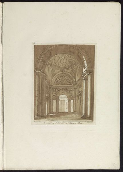 Curator: Here we have a photo reproduction of a print, titled "Fotoreproductie van een prent van het interieur van de Dom van Aken", dating roughly from 1860 to 1885 and credited to Jm. v. Ph. Frey. It depicts the interior of Aachen Cathedral. Editor: Immediately, I am struck by the immense height, conveyed solely through intricate lines etched onto the plate. There's a kind of austerity, but softened by the checkered floor. Curator: It’s interesting you point out the checkers; that repetitive pattern pulls our focus away from any individual. The engraving itself speaks to a period fascinated by the precise replication of grand architectural spaces, distributing images more widely to expand influence beyond geography. What power does the structure itself convey, and how does that resonate within the print? Editor: For me, it's less about political power and more about the enduring power of faith. Look at the arches; each one echoes earlier forms, invoking centuries of sacred tradition and continuity through visual cues alone. Light and dark pull our eyes upward, to divine sources, you see? There is visual symbolism inherent in religious settings, which invites the viewer to be introspective about spiritual purpose, heaven, and earth through structural arrangement. Curator: And that brings us to how these interiors were experienced materially. Think of the craftspeople who dedicated themselves to construction and the social dynamics this cathedral created; an economic network based on faith translated into architectural space. But also the production of this print! Labor processes from building the Dom to rendering this faithful image using period tools. I see these geometric shapes also pointing at economic, material stability translated from space into visual object through the print. Editor: Indeed! So the structure itself is evidence and continuation. It’s like a fingerprint from cultural memory constantly pushing forward to new audiences. The image serves as an entry into contemplation through these geometric rhythms – visual stability! Curator: That is well said. I am drawn in to what can be learned about material distribution, readership, and consumption and how that reflects broader systems of values and labor at the time the print was made. Editor: Exactly! This small artifact, after all, still acts as a grand connector across time.