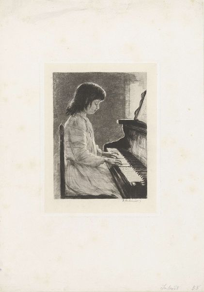 This is Thomas Eakins' intimate painting of his wife, Frances, at the piano. Painted during an era when women's roles were largely confined to the domestic sphere, Frances is portrayed here not merely as a passive figure, but as an active, engaged participant in her own world. In the late 19th century, musical skill was a common accomplishment for women of a certain class. Yet, Eakins seems interested in more than just portraying a social expectation. Frances's focused expression suggests a deep connection to the music and herself. The soft lighting and muted tones create an atmosphere of quiet intensity, drawing us into Frances' private moment. The painting evokes a sense of her individuality, existing beyond societal expectations. As Eakins once said, "If I could give you my feeling for that picture, you would see it as something more than a mere portrait." The artwork encourages a contemplation of the balance between public identity and personal passion, as embodied by Frances Eakins.