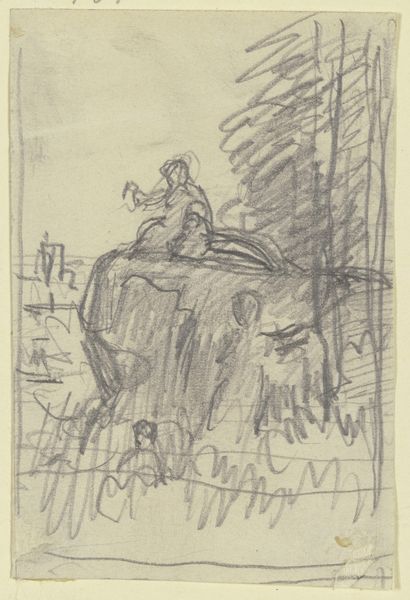Philipp Rumpf created "Figuren in einer Landschaft" using graphite on paper. The quick, expressive lines suggest a scene observed and captured spontaneously. The material itself, graphite, is key here. Its relative softness allows for a range of tonal values and textures, from light, airy strokes to dense, shaded areas, all achieved through the pressure of the artist's hand. Graphite is also easily erasable, making it a medium conducive to experimentation and adjustment. The marks left by the graphite point give us a sense of the artist's process. There is an intimacy that comes with this mode of art making, the artist recording his impressions in real time. Thinking about the work this way, we can appreciate how the act of drawing itself becomes a way of engaging with the world. It encourages us to consider how the simplicity of materials can lead to a complex and nuanced understanding.