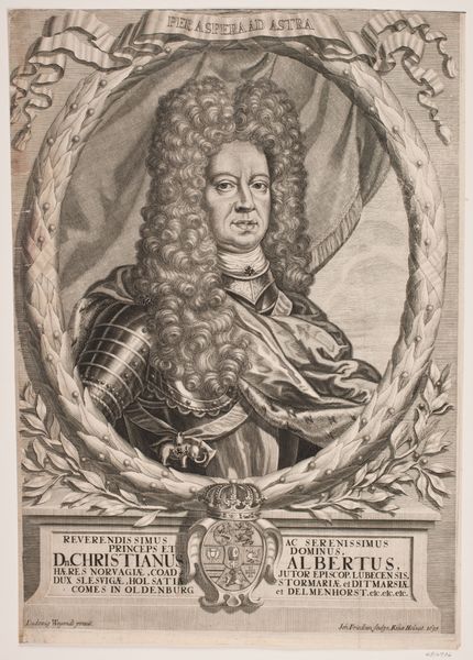 This is an engraving of Friedrich Hoffmann, made in 1675 by Christian Romstet. The image encapsulates the complex relationship between science, patronage, and status in the late 17th century. Hoffmann, a physician, is framed by elaborate ornamentation, highlighting his importance. Note the Latin inscription above his head which details his medical achievements. The inscription below suggests the portrait's unique ability to capture Hoffmann's true essence, a claim common in commissioned portraits of the era. This wasn’t just about likeness; it was about constructing and solidifying a public persona. Made in the German-speaking lands, this portrait reflects a society where medicine was advancing, yet still deeply entwined with social hierarchies. Institutions like universities and royal courts shaped medical practice and knowledge. Hoffmann's portrait speaks to the power structures of his time, where image and intellect were tools for social mobility and influence. To fully understand this work, researchers might explore period medical texts, patronage records, and social histories, revealing the intricate world in which art and science intersected.