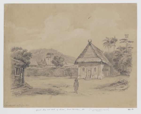 Jannes Theodorus Bik made this watercolor and pen drawing titled, 'Soya on Top, village on Ambon', likely in the early 19th century. This drawing offers a glimpse into the Dutch colonial presence in Ambon, part of the Maluku Islands in Indonesia. The Dutch flag flying high suggests their dominance, while the local architecture and people hint at the existing social fabric. How did the Dutch East India Company shape the lives of the indigenous people? The drawing’s subtle colors create a sense of place, but also raise questions about the artist’s role. Was he simply documenting the landscape, or was there a political agenda behind his work? Archives from the Dutch East India Company, along with historical accounts from the period, could shed light on the power dynamics at play. Remember, art doesn't exist in a vacuum; it's always connected to its historical context.