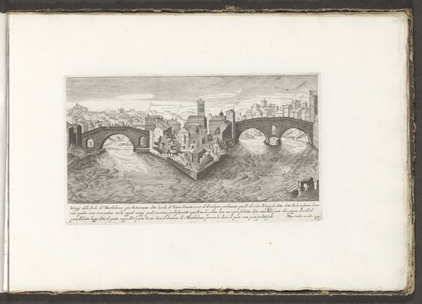 Israel Silvestre created this print of the Pont Neuf and the Pont au Change in Paris using etching techniques. It shows how printmaking, as a technology, could represent the city as an ordered, rational space. Made in France in the mid-17th century, the image reflects the cultural and political transformations of the era. The bridges, as key architectural achievements, were not only functional but also symbolic of royal power and urban progress. The level of detail suggests a desire to document and celebrate the city's infrastructure. Silvestre's work aligns with the broader artistic trends of the time, where artists were increasingly commissioned to produce images that served the interests of the state, promoting a sense of national identity. Historical archives, city plans, and period documents can help us contextualize this image within the urban development and political ambitions of the time. By looking at art through a social and institutional lens, we can better understand its role in shaping and reflecting cultural values.