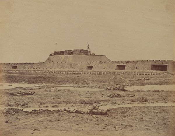 Gustave Le Gray captured "The field of maneuvers in Châlons-sur-Marne" with photography, its date unspecified. A sepia-toned stillness permeates the scene, structured by a strong horizontal composition. A low stone wall cuts across the foreground, grounding the vast field that stretches towards a distant line of tents and buildings. The photograph plays with perspective and scale. The small structure and pole behind the wall anchor our gaze, while the expansive field creates a sense of depth and distance. The tones range from the darker foreground to the pale sky, adding a layered feel. Le Gray's treatment of space is thought-provoking. The image invites us to consider the relationship between the observer, the observed landscape, and the military encampment. Are we witnessing a scene of power, or a meditation on the scale of human activity within a broader landscape? The photograph's formal qualities—its composition and tonal range—are not merely aesthetic. They invite reflection on landscape, power, and representation. "The field of maneuvers in Châlons-sur-Marne" remains a site for ongoing interpretation.