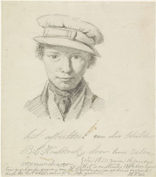 Barend Cornelis Koekkoek’s self-portrait in charcoal presents a study in tonal contrasts and textures. The soft shading of the face and the intricate details of the beret invite a sense of intimacy. The subtle gradations achieved with charcoal suggest a concern with form and structure, characteristic of Koekkoek’s meticulous approach to landscape painting. The background’s hatching lines create depth, pushing the figure forward and engaging us in a semiotic dance between foreground and background. Koekkoek’s emphasis on capturing his likeness may reflect a broader philosophical interest in the self, mirroring the Romantic era’s focus on individual expression and identity. Consider how the beret itself becomes a signifier – perhaps of artistic identity – through the soft interplay of light and shadow. This simple form challenges established meanings, inviting the viewer to contemplate the complex relationship between representation, identity, and artistic intent.