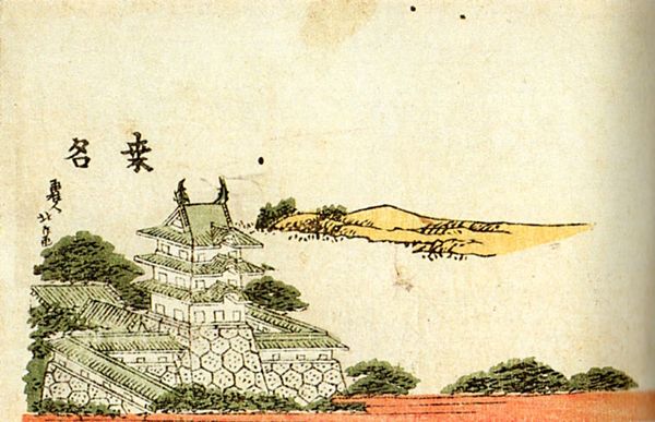 Editor: Here we have Hokusai's "Fuji and Yatsugatake in Shinshū," a page from his "One Hundred Views of Mount Fuji." The waves are so dominant, making the figures in the boat seem almost incidental, like a dance with nature itself. What do you see in this piece? Curator: It feels like a meditation, doesn't it? Hokusai's playing with perspective, dwarfing humanity against the might of nature. The boat becomes a tiny stage. Are they threatened, or are they part of this awesome force? Editor: I hadn't thought of it that way – a stage. That makes me wonder if they are willing participants in the performance. Curator: Perhaps it’s both, a challenge and a submission to the sublime power of the natural world. And it makes you want to jump in, right? Editor: Absolutely. Now I see the allure, the almost playful relationship between the people and the landscape. Thanks!