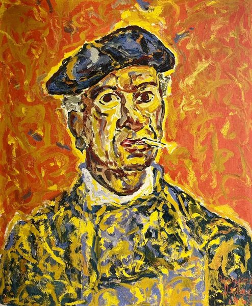 Editor: We're looking at "Portrait of Winston Churchill," an oil painting by Zani Corrado, created in 2018. It has a somewhat caricatured feel. What strikes me most is how the planes of the face are built up. What do you see in the composition? Curator: Focusing on form, we see the artist deploying broad brushstrokes and a limited palette to construct the portrait. The interplay of light and shadow defines Churchill’s features. The artist juxtaposes the smoothness of the background with the impasto of the face. Editor: Impasto, right, that thick application of paint adds texture. It almost looks sculpted in places. The bold colors—particularly the yellow background—are an interesting choice as well. What’s the relationship there, would you say? Curator: The color scheme, though seemingly straightforward, has nuanced compositional importance. Yellow, as a vibrant background, emphasizes the darker hues of the figure, thus focusing attention to the corporeal details. It serves almost as an inverse chiaroscuro. Editor: Inverse chiaroscuro? Fascinating! The brushstrokes too. Do you think that impacts our perception of it as contemporary? Curator: The vigorous handling of paint indeed contributes to its contemporary character, as do the bold contrasts of the darks against the light. However, that's really only achieved through understanding of form that comes from deep study of colour. Editor: I appreciate how you break down the impact of artistic decisions! Thinking of form rather than recognition first, is helpful. Curator: Precisely. Disregarding contextual history, one may instead study solely how composition contributes to both surface meaning, and potential symbolic meaning.