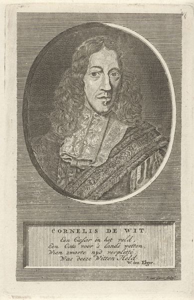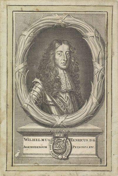 Curator: There’s something about the way light catches in engravings; it always makes me think of whispered secrets. This is an image of Willem III, Prince of Orange, rendered in that precise, meticulous style we often see depicting royalty from around 1688 to 1711. Editor: He looks every bit the regal ruler, but also oddly vulnerable. It’s the eyes, perhaps? They hint at a person beneath all the Baroque pomp and circumstance, doesn't it? Curator: That "pomp" is deliberate of course. Note how the engraver meticulously captures every curl in his wig, the intricate detail of his armor. It's an assertion of power through image. Remember Willem’s complicated position—a Dutch prince becoming King of England, Scotland, and Ireland during a turbulent time. The engraving becomes part of the image-building apparatus. Editor: Building and, in a way, containing. There’s something inherently… constricting about portraiture, especially then. Willem’s essentially presented as a brand, a symbol, the complexities and contradictions of a real man squeezed into an idealized two-dimensional frame. He’s there but he's not *there*, if you catch my meaning. Curator: Exactly. Think about the context of printmaking itself. Engravings like these would have circulated widely, reinforcing Willem's image as a strong, legitimate ruler throughout his territories, especially useful when challenged with issues like succession. And even the medium becomes an extension of authority and influence. Editor: And who commissioned this? Was it the royal house of Orange or one of their allies? Or perhaps a merchant hoping to curry favor? These things matter, you know, it all comes down to who is pulling the strings and shaping the narrative. Who wants this story told? Curator: Indeed. We may never know the exact hand behind it, but we can appreciate how artists become vital conduits for political aspirations, even if they did have to forego certain degrees of creativity to get there. Editor: Well, I still see those vulnerable eyes, piercing through centuries and all that calculated image-making! And to be frank, he doesn’t strike me as all that pleased with it. Makes you wonder. Curator: Art can reveal the intentions of its commissioners as well as betray the more interesting realities it wants to hide. Editor: Perfectly said. This image, intended to project unyielding authority, now mostly inspires unanswered questions for me.