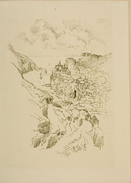 Joseph Pennell made this drawing, titled 'The Theatre, Segesta,' with what looks like a graphite pencil. The lightness of the marks makes me think about artmaking as a practice in seeing, an almost meditative process of observing and recording. The texture created by the pencil strokes is so interesting. The shading is built up with these tiny, almost hesitant lines, giving the whole drawing a hazy, dreamlike quality. Look at how the mountains in the background fade into the sky, it’s all just tone and suggestion. Then your eye tracks down to the sharp, angular marks which describe the architecture. There's a real tension between detail and abstraction. It reminds me of some of the landscape drawings of Cy Twombly, although Twombly’s mark making has a much more scribbled, chaotic feel. There's such a delicacy and openness in Pennell’s drawing, it celebrates ambiguity over any fixed idea of how the scene should look.