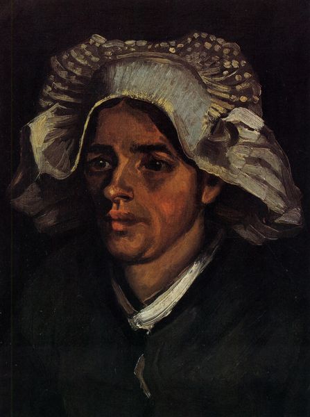 Vincent van Gogh's "Head of a Peasant Woman with White Cap", now at the Kröller-Müller Museum, immediately strikes us with its bold brushstrokes and earthy palette, evoking a sense of raw, unvarnished reality. The composition is simple, focusing intently on the woman’s face and headgear against a dark, almost brooding background. Van Gogh's expressive use of impasto brings a tactile quality to the painting, with each stroke contributing to the overall form. This technique moves beyond mere representation. It almost seems to embody the very essence of his subject, creating a tangible presence that disrupts conventional portraiture. Consider how Van Gogh uses the white cap to frame the woman's face, drawing our eyes to her direct, unwavering gaze. The subtle interplay of light and shadow across her features creates a sense of depth. This, and the expressive brushwork, challenges our perceptions and invites contemplation. It's a space where the boundaries between the subject, the artist, and the viewer blur, offering a profound engagement.