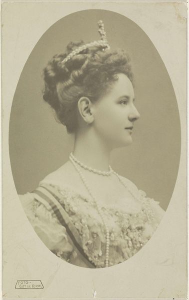 Adolphe Zimmermans created this portrait of Wilhelmina, Queen of the Netherlands, using photography. The composition here is starkly simple. The profile view, rendered in monochrome, isolates Wilhelmina against a light background, emphasizing the contours of her face and the intricate arrangement of her hair. The softness of the photographic medium mutes fine details, encouraging a reading of essential forms rather than a precise likeness. This restraint in detail creates an aura of timelessness. This portrait operates within a complex semiotic system. The profile view, a classical trope, lends an air of stateliness, yet the photograph’s softness also humanizes the young queen. The upward gaze suggests ambition, yet it is unanchored to any setting. The photographic medium itself adds a layer of mechanical objectivity, a seeming promise of unmediated truth, even as its artistic manipulation subtly shapes our perception. Ultimately, this portrait transcends mere representation. Through its formal choices, it becomes a site where ideas of monarchy, femininity, and representation itself are subtly negotiated, each form contributing to an evolving cultural dialogue.
