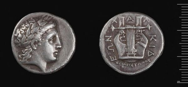 Editor: Here we see a coin: the Tetradrachm of Ptolemy I. It's silver, and the wear on its surface speaks volumes about its history of circulation. What can we learn about Ptolemy's Egypt from the material of this coin? Curator: This coin exemplifies the intersection of power, labor, and materiality in Ptolemaic Egypt. The silver itself was mined, likely under harsh conditions, representing a raw material transformed into an instrument of economic and political control. Editor: So the value isn't just symbolic? Curator: Precisely. Each coin represents a fixed amount of labor and resources, controlled and disseminated by Ptolemy, solidifying his power through circulation and consumption. Editor: Fascinating! I never thought of a coin carrying so much meaning. Curator: Understanding the material processes allows us a glimpse into the economic and social structures of the time.