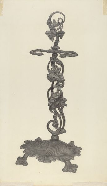 This andiron was drawn by Herman Bader, sometime between 1855 and 1995, with what looks like a pencil. It’s amazing, isn't it, how something functional can become something to look at? I love the shading in this drawing. It’s not just about showing what the andiron looks like, but also about how it feels. The way the light catches the curves and edges makes it feel almost sculptural. There’s a real sense of weight and texture, like you could reach out and touch the cold metal. I’m drawn to the little details, like the decorative flourishes on the legs and the perfectly round knob on top. Each mark adds to the overall impression of solidity and craftsmanship. This drawing reminds me a bit of some of the architectural studies by the Bechers, with the same appreciation for form and function. It’s a reminder that art can be found in the most unexpected places.