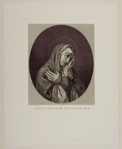 Editor: This is R. Bedetti's "Madonna of the Star." It's a black and white print, and the figures seem to glow from within, emanating grace and serenity. What’s your take on it? Curator: It's fascinating how this image participates in the historical construction of idealised femininity. The Madonna, often portrayed as gentle and subservient, reinforces patriarchal power structures. How does this depiction resonate with contemporary views on gender? Editor: I hadn't thought about it that way. It’s definitely something to consider. The star and crown seem to reinforce that idea. Curator: Exactly. Symbols like the star and crown not only denote divine status, but also hierarchical structures. Examining such imagery allows us to understand the complex interplay between religion, power, and gender roles throughout history. Editor: That gives me a lot to think about. Thank you for that perspective! Curator: It's through these critical dialogues that we can begin to dismantle harmful stereotypes and create space for more equitable representation.