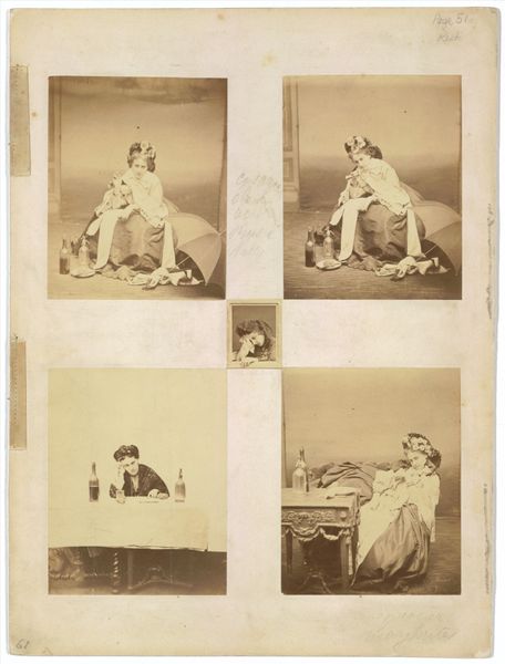 Curator: This is an album of North African photographs, taken by J. André Garrigues, but without precise dating. The dimensions are about 28 by 43.5 centimeters. Editor: My first thought is the sheer visual weight of whiteness against the neutral ground. It’s both luminous and somewhat oppressive. Curator: Exactly. The compositional choices in both photographs, with the subjects enveloped in light-colored clothing, emphasize form and texture—a semiotic blank slate ready for the viewer. Editor: I agree. It makes me reflect on the themes of identity and representation, and how visual elements create a sense of cultural distance but also invite us to project and imagine. Curator: In the end, it’s about the dance between what's shown and what remains elusive. Editor: Beautifully put. It really does linger in the mind, doesn’t it?