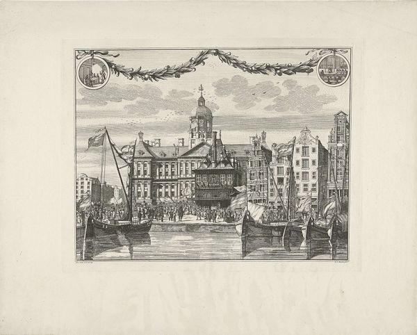 Curator: Ian Strang's "Fishmongers' Hall, London," created in 1920, offers a glimpse into the city's architectural landscape through the meticulous technique of etching and pen drawing. What stands out to you upon first seeing it? Editor: Well, first off, it feels very "London" to me, almost like a stage set for a Victorian novel, except less grim, somehow lighter, maybe because of all the sky above the skyline. The detail is stunning, makes you want to put on some fog glasses and climb into it. Curator: Absolutely. The print really captures a certain mood that defines London—a juxtaposition of imposing structures and the fluidity of the river. The presence of Fishmongers' Hall, with its neoclassical facade, speaks volumes about the historical importance of trade and governance along the Thames. Editor: True. Fishmongers' Hall is like this solid, proper edifice, juxtaposed to those gritty industrial details…cranes, rooftops all jostling for position. It reminds me that cities are living things, constantly being built and unbuilt. Curator: The choice of etching emphasizes this. Strang’s attention to the play of light and shadow creates a remarkable sense of depth, inviting the viewer to explore London’s multifaceted urban fabric. Editor: I notice, the precision somehow conveys so much about that era, that early 20th century striving for accuracy alongside…dare I say romance? Or maybe it’s just nostalgia hitting me. Curator: And that’s where the power of art resides—in its ability to transport us through time and evoke these connections. It is indeed more than a historical record; it's an invitation to imagine London as a dynamic entity, then and now. Editor: It's a snapshot of a city frozen in a moment but still breathing. It’s a bit like those sepia toned photographs, except brought vividly back to life via Strang’s skillful draftsmanship. Curator: Looking at this piece encourages us to consider what it means to preserve cultural heritage, what structures are selected to stand the test of time, and why. Editor: Absolutely. It reminds you how a single artwork can be a vessel for memories, social commentary, a whole urban poem almost. Thanks for shining a light on this one!