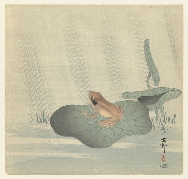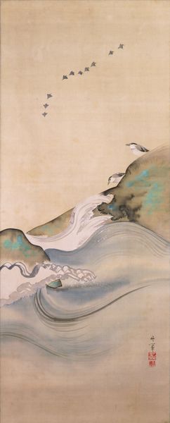 Editor: We're looking at "Otters Swimming," an ink and watercolor work by Seki Shūkō from around 1890-1892. The muted tones create such a serene feeling; the otters seem suspended in this almost dreamlike space. What stands out to you as you interpret this piece? Curator: The seeming simplicity is deceptive. Consider how the otter, often viewed as playful, here might evoke something deeper within the Japanese cultural context of the Meiji period. Think about the cultural memory associated with animals – are they symbols of prosperity, family, or perhaps adaptability in a time of rapid societal change? What emotions are triggered when you view the arrangement of the three otters – a family group perhaps? Editor: I hadn't considered that at all. It's easy to just see cute animals. But, in that case, could their positioning - one above and two below – represent a family hierarchy? Curator: Potentially, or it may reflect naturalistic observation. But don’t discount the potential encoded symbolism. Are there folktales about otters and the wisdom of the animal kingdom from which the painter could have drawn inspiration? What might the lack of distinct environment, the ethereal background, imply about humanity’s relationship with the natural world during that era? Is it harmonious or something more estranged? Editor: It's fascinating how much cultural information can be embedded within something so seemingly straightforward. So it is an interplay between the naturalistic depiction and layers of cultural meaning? Curator: Exactly. It shows that images can be more than they appear, carrying generational ideas and values that inform how we perceive them. This approach enables us to understand cultural memory and its ongoing effect on visual interpretation. Editor: This makes me think about other deceptively "simple" animal depictions from different cultures. I have so much more to learn! Curator: Indeed, and now you know how to look deeper.