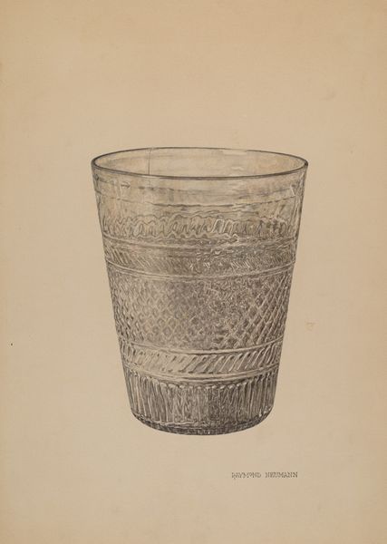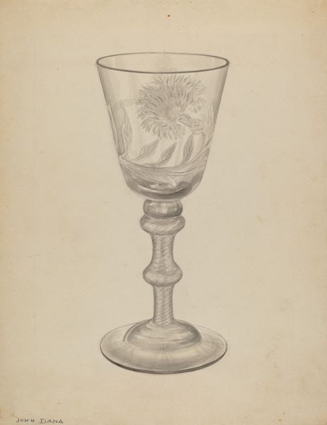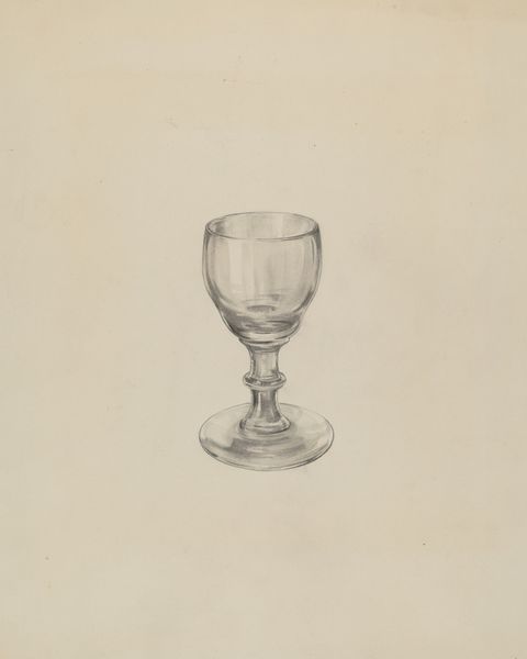 Editor: This is May Hays’ “Goblet,” a pencil drawing created sometime between 1935 and 1942. It's quite a delicate drawing. What is your interpretation of this seemingly simple subject matter? Curator: I see more than just a drawing of a goblet; I see a representation of domesticity viewed through the lens of gender and class in the mid-20th century. Who was drinking from this goblet and in what context? Consider the labour that went into creating this object, from the glassblower to the artist rendering it on paper. Think about the gendered expectations surrounding maintaining a home and presenting a certain image to the world. Editor: That's fascinating. I hadn't considered the labor aspect. Is the drawing itself making a statement about these social issues, or are we just projecting onto it? Curator: I think it’s a combination. Art is rarely created in a vacuum. Even in its seeming simplicity, this drawing reflects the cultural values and anxieties of its time. The detailed rendering of a functional, everyday object elevates it, prompting us to ask: Who has access to these refined items, and what does that say about societal hierarchies? Think about the artist, May Hays. Was she interested in reflecting this status? What do we know about her biography? Editor: Not a lot, actually. That makes me wonder even more about the drawing's purpose. Curator: Exactly! It invites us to consider the silences and gaps in art historical narratives and who has been historically excluded. The very act of documenting this object elevates its importance but simultaneously begs us to ask to what ends? Editor: So, even a seemingly straightforward drawing of a goblet can reveal complex layers of meaning related to social status and gender. Curator: Precisely. It’s a reminder that even the most ordinary objects are imbued with cultural significance, waiting to be decoded. Editor: This gives me a new appreciation for approaching art through different lenses!