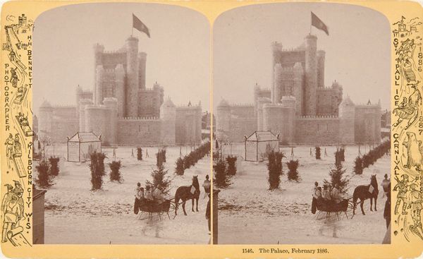 Henry Hamilton Bennett captured this stereograph of the "Main entrance and central tower of [Ice] Palace" during the Saint Paul Ice Carnival around 1886-87. These carnivals became a means to both celebrate and brand northern cities like Saint Paul, Minnesota and promote a unique regional identity. Consider how race and class are embedded here. The Ice Palace was not just a feat of engineering, but also a stage upon which class distinctions played out. Built by working-class laborers, the palace then became a site of leisure and spectacle for the middle and upper classes. It created a temporary fantasy world, where social hierarchies were both reinforced and momentarily suspended. Note how Bennett's image flattens the social complexities of the event. The figures in the foreground are mere accents to the grandeur of the palace. These carnivals offered a space for communities to come together, but the image reminds us to consider whose stories and experiences were centered, and whose were marginalized.