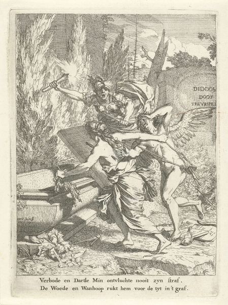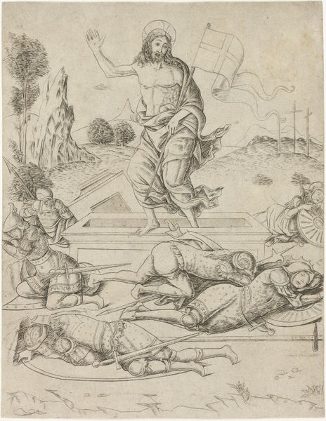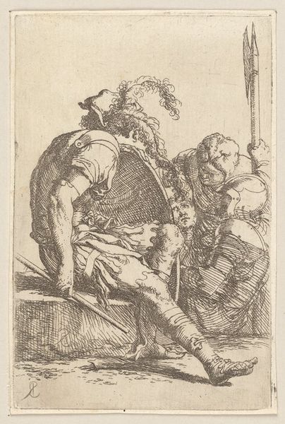 Editor: This is "A Captain of Banditti Sending Out a Party" an etching from 1778 by John Hamilton Mortimer, currently at the Metropolitan Museum of Art. The scene has an unsettling vibe, with all these armed men sketched in such stark detail. What's your take on this piece? Curator: Look closely at the *process* here. Mortimer uses etching, a printmaking method that democratized image production in the 18th century. Prints weren't precious unique objects. They were reproducible, consumable. Note the level of detail achievable with etching, despite it being a relatively 'low' art form compared to painting. Why do you think Mortimer chose etching to depict this scene of banditry? Editor: Maybe to reach a wider audience with his narrative? What’s the social commentary aspect here? Curator: Precisely! Consider the social context. "Banditti" – often romanticized figures – challenge the established order. Mortimer is highlighting power dynamics, who has access to resources, who is deemed 'criminal'. Etching, a commercially viable medium, allows him to disseminate this image widely, sparking a dialogue about class and control. Notice also the emphasis on clothing, adornment, arms as material indicators of the figures’ status. Do you think Mortimer fully condemns the bandits or complicates the picture? Editor: I guess it's more complex. He depicts them with enough detail to be almost sympathetic. The material trappings, the weapons – it all hints at a kind of forced criminality. It wasn’t their original design maybe. Curator: And what about the implied viewer? The print as commodity invited broader commentary and consumption. So, by engaging with Mortimer's materials and the context of their use, we can unlock so much more depth and commentary. Editor: Right, it gives it all a new weight when thinking about it not just as a historical image but about who it was *for*. Thanks, that’s changed how I’ll look at etchings from now on.