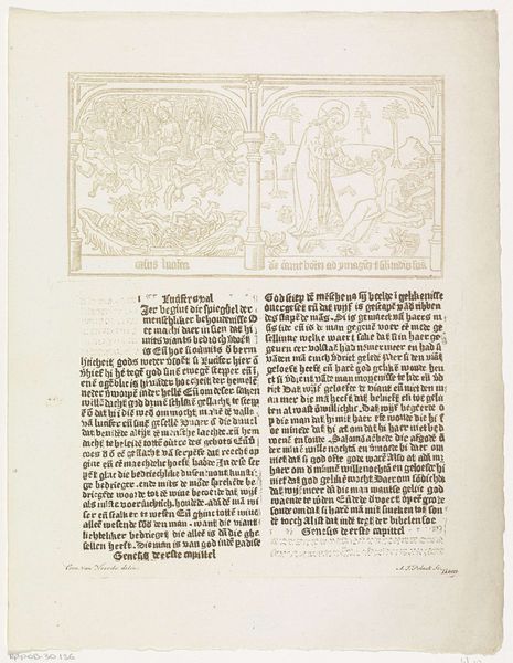 This woodcut, made by Bernard Salomon around the mid-16th century, presents scenes from the biblical book of Kings. The composition is structured around a series of rectangular panels, each densely filled with figures and landscapes rendered in a high-contrast black and white. The use of hatching and cross-hatching creates a rich surface texture, emphasizing the materiality of the print. The organization of the page into discrete narrative units invites a structuralist reading, where each panel functions as a sign within a larger semiotic system. Salomon's strategic use of line and form creates a sense of depth and movement, guiding the viewer's eye through the complex scenes. The repetitive use of certain motifs, such as trees and buildings, suggests an underlying order and symbolic resonance. The stark contrast between light and dark serves not only to define forms but also to evoke a sense of drama and moral clarity, reflecting the religious and cultural context of the Reformation era. This emphasis on form and structure invites us to decode the underlying principles that govern both the artwork and the world it represents.
