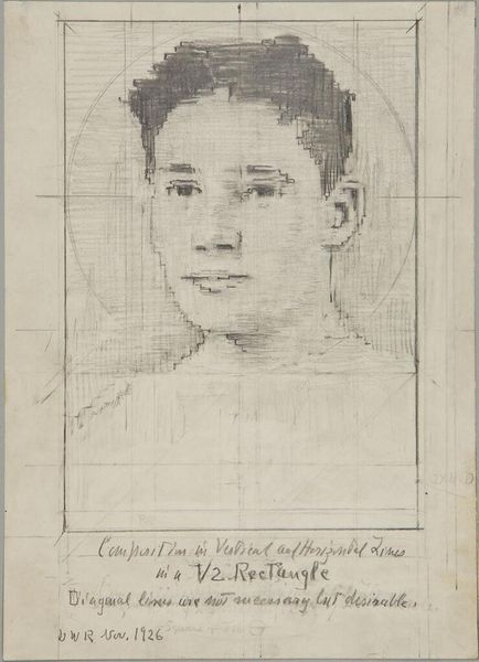 Curator: Before us is "Male Head," a drawing by Denman Waldo Ross, housed at the Harvard Art Museums. The image dimensions are approximately 27 by 19 centimeters. Editor: My first impression is one of geometric constraint. The overlay of lines seems to confine the subject. Curator: Indeed. The structural elements of the drawing create a sense of order and perhaps even idealization of the male form. Note the precision. Editor: And yet, those very lines reveal the process, the labor of constructing this image. The pencil on paper, the accumulation of marks... it's all about the making. Curator: An interesting perspective. I am focused on the internal dynamics. The balance, the symmetry, the planes of the face. Editor: For me it is how those planes were painstakingly rendered. It is a testament to the labor behind even a seemingly simple sketch. Curator: Ultimately, these varied interpretations offer a richer understanding. Editor: Yes, a deep appreciation of art's layers – process and form.