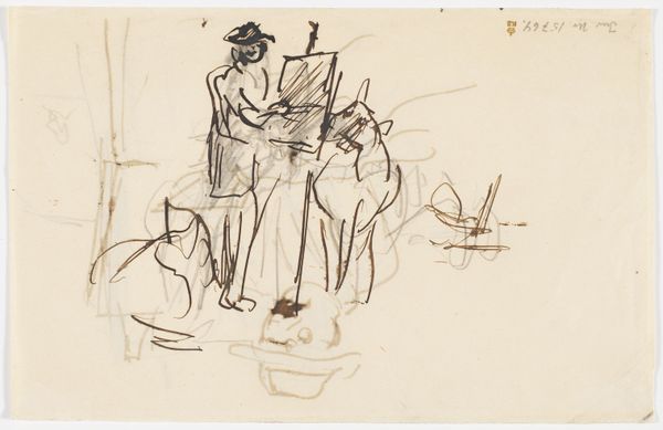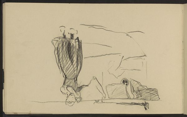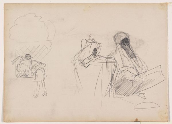 Editor: Here we have Karl Isakson's 1920 pencil drawing, "The Entombment of Christ." It's quite stark and minimal, a very quick sketch, really. How does the starkness of the materials inform your reading of this traditionally solemn subject matter? Curator: This work speaks volumes about artistic labor and the context of its creation. Isakson's choice of humble materials – a simple pencil and paper – moves away from the expected grandeur associated with depictions of Christ's burial. It democratizes the process, suggesting a wider accessibility of religious themes beyond the wealthy patron. Editor: I see what you mean. The sketch-like quality also gives it a sense of immediacy, as if capturing a raw emotion. Curator: Exactly. Consider the economic conditions after World War I. Resources were scarce, and there was a move towards simplicity and functionality in art and design. This drawing reflects that ethos. The very act of sketching, rather than a finished painting, also alludes to the daily toil and process involved in artistic creation, highlighting labor, and offering no romanticised end point, or master work. What materials would a working class person in the 1920s be most likely to engage with, and how does that context shift meaning here? Editor: So, it's not just about the religious narrative, but about the act of creation and the materials available? Curator: Precisely. Think about the consumption of art itself. Was this sketch intended for public display, or a private study? Who was the intended audience, and how would their social context shape their interpretation? Editor: That’s a very different way of thinking about art. It connects it to broader social realities, beyond just aesthetics and technique. Curator: Indeed. The apparent rawness becomes a powerful statement about art making and material accessibility. Editor: I'll never look at a "simple" drawing the same way again. Thank you!