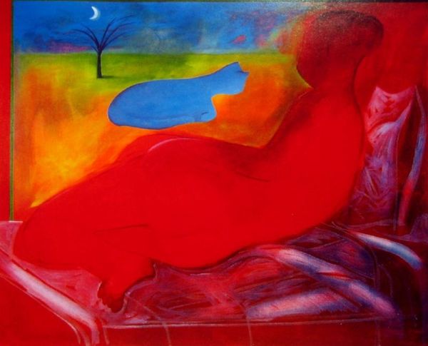 This untitled work was created by Zdzislaw Beksinski, a Polish artist renowned for his disturbing and dystopian imagery. Beksinski's art emerged during Poland's communist era, a time of censorship and limited artistic freedom. His nightmarish visions might be seen as a subconscious reaction against the oppressive political climate, a way of expressing anxieties that couldn't be voiced directly. The unsettling imagery taps into a collective unease. Notice how the artist represents a human figure, with its distorted features and decaying flesh, using a striking palette of green and red. This might be interpreted as a reflection on mortality, the fragility of the human body, and the inevitability of decay. As historians, we can delve into the artist's biography, the political climate of Poland during his lifetime, and the broader cultural anxieties of the 20th century to better understand the meaning of this disturbing, yet compelling, artwork.