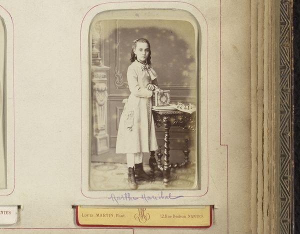 Editor: This photograph, "Portrait of a Girl Standing by a Table with an Open Book," made between 1897 and 1902 by Guillame Maximilien Zimmermann. I see such quiet introspection. What do you see in this piece? Curator: Oh, but it whispers, doesn't it? It speaks of the late 19th century and all its aspirations through pictorialism, the way a memory flickers back from an almost-forgotten time. She stands there, caught in the amber of time. The table and book suggest knowledge, contemplation. I imagine her world expanding with each page. And the overall mood…does it perhaps strike you as a little…melancholy? Editor: Melancholy... I hadn’t thought of it that way. I saw serenity. Curator: Ah, but is serenity not just melancholy dressed up in its Sunday best? Or is it the stillness before she turns another page and the whole world blooms? Notice the light; the way it softens every edge. Like a memory burnished by time... Is this her truth or the artist's imagination of who she might be? Tell me, what does the framing suggest to you? Does it draw you in or keep you at a distance? Editor: It does feel like a deliberate choice to keep a distance. Almost like looking through a window into another world. Curator: Precisely! A little like looking at a dream, wouldn’t you say? We’re peering into a private moment, a captured whisper from a time long past, reimagined. Photography, especially pictorialist photography like this, plays with reality, seeking beauty above all else. It's trying to evoke an emotional state in us... Editor: So, the serenity I initially saw might be intentional—the artist’s intention to create a sense of peace and idealized femininity. I love that! Curator: Precisely! We may never really *know*, but we have certainly wondered…which, really, is the very best part of art, don’t you think?