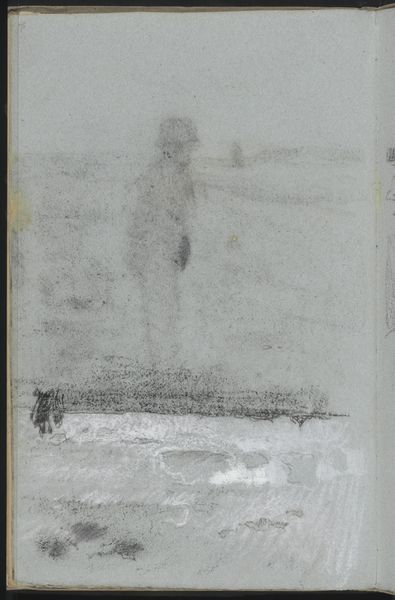 Editor: Here we have Willem Witsen’s “Standing Man in a Landscape,” dating from around 1884 to 1887. It looks like a charcoal drawing, very understated. I'm immediately drawn to how solitary the figure appears. What's your interpretation of this piece? Curator: I see this work as deeply rooted in its socio-political context. Consider the time: the late 19th century, a period marked by rapid industrialization and urbanization. Witsen, along with other artists, was part of a movement that sought refuge in the quietude of the landscape, idealizing the pastoral as a response to the discontents of modernity. But who is this figure, and what does it mean for him to simply be standing? Is he observing the landscape, or disconnected from it? What societal expectations would the "standing man" be faced with during the rapid industrialisation of the late 19th Century? Editor: That's fascinating! I hadn’t thought about it as a form of resistance. So the solitary figure could represent someone left behind by progress? Curator: Exactly. And it raises questions about the dominant narratives of progress and who benefits from them. Are there echoes of earlier romantic visions of man and nature present? How might class intersect with this reading? Could his very act of "standing" be a quiet form of protest? What if the figure is in between places, caught in shifting identity and location, a representation of something in transition? Editor: I see how framing it through that lens opens up a richer discussion about the social issues of the time. Curator: It challenges us to think about art as more than just aesthetic representation, but as a form of social commentary, embedded in a web of power relations. This type of figure is visible throughout all of art history, representing many diverse intersections, always a reflection of its current period. Editor: I’ve definitely gained a deeper understanding. Thanks, that really changed my perspective. Curator: My pleasure, questioning our assumptions can unlock such surprising connections!