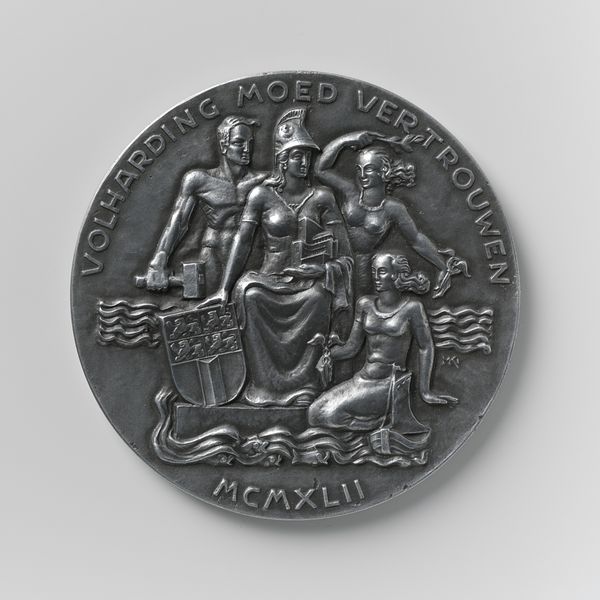 Editor: Here we have a silver medal created by Hans Reinhart the Elder in 1536. It's currently at the Metropolitan Museum of Art. The detail is striking, and it's clearly telling a story. How would you interpret the imagery in this piece? Curator: What immediately captures my attention is the cultural weight of the scene. The depiction of Adam and Eve under the apple tree resonates deeply with Western viewers, representing not just a biblical event, but also themes of temptation, knowledge, and the fall of humankind. The surrounding imagery almost acts as commentary on the ripple effects of that pivotal moment. Do you see how the serpent isn't just a snake, but a potent symbol of deceit? Editor: Yes, I see what you mean. The animals add a layer of complexity too. And I’m intrigued by the smaller figures around the border, what story do they tell? Curator: The bordering vignettes represent the consequences. Notice figures engaged in various struggles or perhaps even acts of violence? This continuous narrative acts almost like a visual commentary on morality and mortal consequences. These choices shape not just individual lives but collective human history. Editor: It's fascinating how the artist crams so much symbolic meaning into a relatively small space. I guess, like the apple, there is more than meets the eye. Curator: Indeed. This medal functions not just as a historical marker, but also as a mirror reflecting humanity's continuous struggle with knowledge, choice, and consequence.