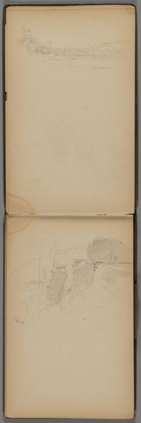 Curator: Sanford Robinson Gifford's sketch, "Schooner Head, Mount Desert Island, Maine," appears to be a preliminary study within a sketchbook. It has a raw, immediate quality. Editor: The lightness almost makes it fade into the page! Its small size and delicate lines create an intimate viewing experience. What do you think Gifford was trying to capture here? Curator: Looking at the material itself gives me a hint: this seems less about picturesque representation and more about the act of seeing, recording a fleeting impression of place. The reverse also has another study. Editor: Right! His sketches were made using simple materials, and they capture a specific moment in time and place. The sketchbook format invites us to consider the artistic process itself. Curator: Exactly, a democratization of landscape that emphasizes everyday experience over grand narrative. Editor: I appreciate how it challenges our perception of what constitutes a finished work of art. Curator: Indeed, seeing this makes you think about art history in a different way.