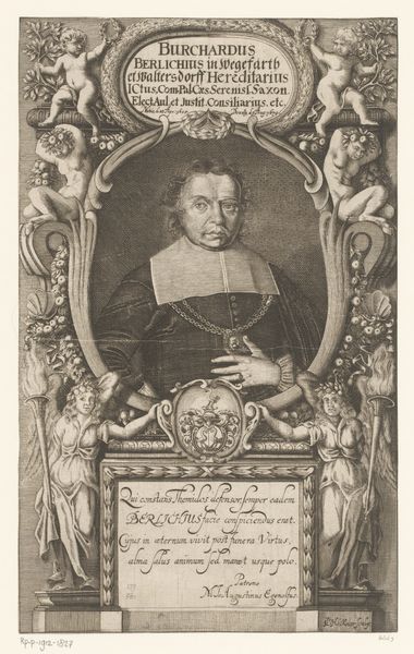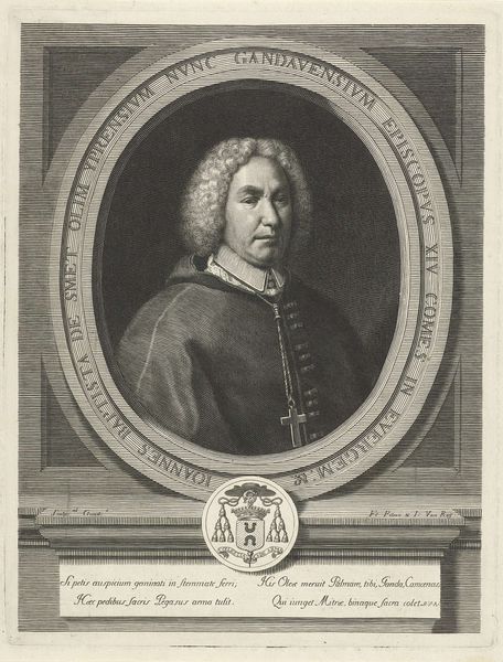 Editor: This is a portrait of Cardinal Antonio Sersale, an engraving made after 1754, now residing at the Rijksmuseum. I find the detail incredible for a print. How can we interpret this work in terms of its creation and place in society? Curator: Well, let’s consider the means of production. Engravings like this were essentially reproducible commodities. The labor involved – the skilled hand meticulously cutting lines into a metal plate – suggests a craft deeply intertwined with burgeoning capitalism and its means of distribution. Notice the Latin inscription and heraldic symbols. What purpose might this serve beyond pure aesthetics? Editor: It almost feels like a… mass-produced status symbol? Intended not just for viewing, but for affirming social hierarchy? Curator: Precisely. The material itself, the paper and ink, speak to access and dissemination. Engravings allowed for portraits of prominent figures to circulate beyond the elite circles who could afford painted portraits. Think about who commissioned this, and who would have consumed it. Editor: So, the value lies not only in the artistry, but also in how it participates in systems of power and social display? Curator: Absolutely. Consider the role of workshops and the division of labor in creating such prints. The act of engraving itself becomes a process of commodification and dissemination of power. Can we truly separate "high art" from these economic realities? Editor: I see, framing it as a product, really makes me think about art's relationship to commerce and its effect on social values, too. It definitely takes away that romantic, idealized perspective I sometimes get stuck in. Curator: Good. By exploring materiality, process, and social context, we can peel back the layers of ideology embedded within seemingly simple images and start seeing art as a dynamic participant in cultural production.