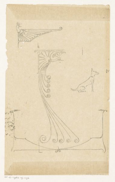 Curator: What strikes me first about this sketch is its airy elegance. Editor: Agreed. It's remarkably delicate, like a phantom structure on aged parchment. We are looking at a drawing entitled "Design for Architectural Ornament," and on the verso, two more designs. Attributed to an anonymous artist, this pencil drawing on paper dates to the 18th century, placing it squarely in the Neoclassical period. Curator: Yes, the precision of those geometric forms, even in a sketch, reflects Neoclassical ideals of order and reason. What do you make of the imagery itself? These open-air structures... Editor: They evoke a feeling of classical temples or pavilions, yet there’s an undeniable playfulness. The finials and flourishes soften the strict geometry. The motifs on the bottom structure remind me of fleur-de-lis, a stylized lily that serves as the emblem of France, loaded with history and associations with nobility, and refinement. Curator: That connection to the fleur-de-lis opens some questions. Was this artist French, or working for a French patron? Architectural ornament was a powerful tool for conveying status, ideology, and aspiration, especially during a period of revolution. The rise and fall of design and how design carries symbolic baggage throughout various historical period remains a crucial insight. Editor: It's fascinating how a simple sketch can suggest so much. Even incomplete, we perceive an assertion of power. A structure intended not merely for shelter, but for visual declaration. There is definitely a desire to conjure status or power. The design language is clear and effective. Curator: Indeed. This drawing shows that architectural ornament serves more than aesthetic functions. Its imagery engages a much wider context of society, influence, and public imagination. Editor: It is wonderful to imagine this design manifested on a building and seeing how social values from that period reflect into a tangible artform. Curator: A remarkable visual and cultural statement captured on a single sheet of paper.