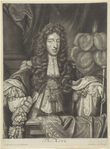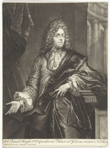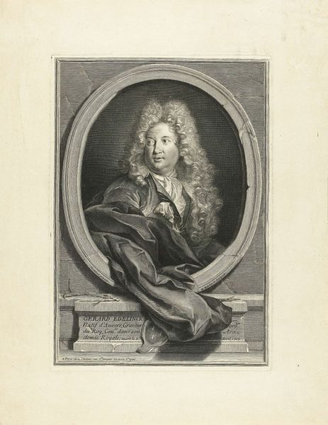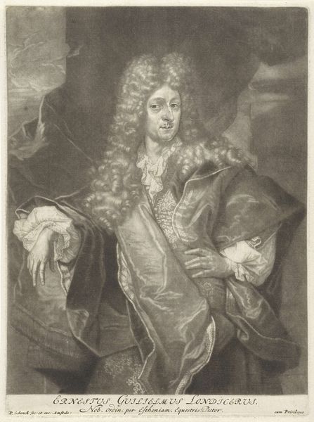 Curator: Editor: Here we have "Portret van Nicolas Barbo, heer van Grand-Villars" from 1682 by Jan van der Bruggen. It appears to be a pen drawing, and it strikes me as remarkably detailed. What can you tell me about this piece? Curator: The first thing I see is the artist's masterful control over materials. The gradation from light to shadow suggests a deliberate, painstaking application of pen and ink or perhaps even charcoal. How was the paper itself prepared, and where did Bruggen source his pigments? Those details matter. Editor: I hadn't considered the paper itself. I was too focused on the image it created. What would the significance of pigment source or preparation be in this instance? Curator: In this era, those choices speak volumes. The quality of the paper and ink reflect Barbo's wealth and status, yes, but it also says a great deal about Bruggen's studio practice, his connections, and his place in the economic landscape of art production. This isn't just a portrait; it's a commodity, a transaction. Editor: So, it is not just about capturing a likeness but showcasing a network of resources and labor that went into the portrait itself. Curator: Exactly! Think about the craft involved in creating those elaborate garments, the wigs—who made those, and how did that labor contribute to the overall presentation of power? Also, consider that this portrait may have been copied as engravings and sold in prints. Editor: That's a perspective shift! Now I see how examining the materials and means of production changes my understanding. Curator: It moves us beyond simple aesthetics, doesn't it? Now it forces us to ask, “Who benefits from this image, and what does it communicate about the world that produced it?" Editor: I’m glad you pushed me to think about it from a materialist angle! I learned to think beyond what is immediately apparent in the art and focus more on labor. Thanks!
