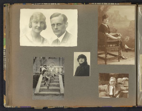 Ton Blom's "Twee portretten" presents a pair of photographic portraits mounted within what appears to be an album page. The sepia tones and the formal poses evoke a sense of early twentieth-century portraiture. Structurally, the composition divides into two distinct, yet related, spaces. On the left, a woman gazes subtly, while the right features a man in a suit. The portraits, though distinct, are unified by their tonal consistency and their placement within the frame, suggesting a dialogue about the representation of identity. The use of photographic technology underscores the tension between capturing a likeness and constructing a representation. What’s intriguing is how Blom uses the very structure of the photographic medium to explore themes of identity, representation, and social conventions. Consider how the placement and framing contribute to an understanding of these portraits, not just as images of individuals, but as a constructed tableau, inviting us to question the nature of photographic truth and the stories these images attempt to tell.
