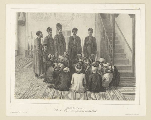 Auguste Raffet created this lithograph entitled "Cossack Bodyguards of the Line" in 1837. It portrays a group of Cossack bodyguards during a period of Russian expansion into the Caucasus. The image offers insights into the complex identities and power dynamics present in this region at the time. Cossacks, who were often of mixed ethnic backgrounds, served as border patrol and military forces for the Russian Empire, thereby occupying an ambiguous position of both privilege and subjugation. Raffet's depiction can be interpreted as a study of masculinity and military might, yet it also reveals the cultural diversity within the Russian Empire's military ranks. The bodyguards' varied attire and weaponry suggest a blend of local traditions and imperial influence. Consider how this image reflects the broader historical context of imperial expansion and cultural exchange. It's a visual record of a specific time and place. It encourages us to reflect on the human stories embedded within larger geopolitical narratives.